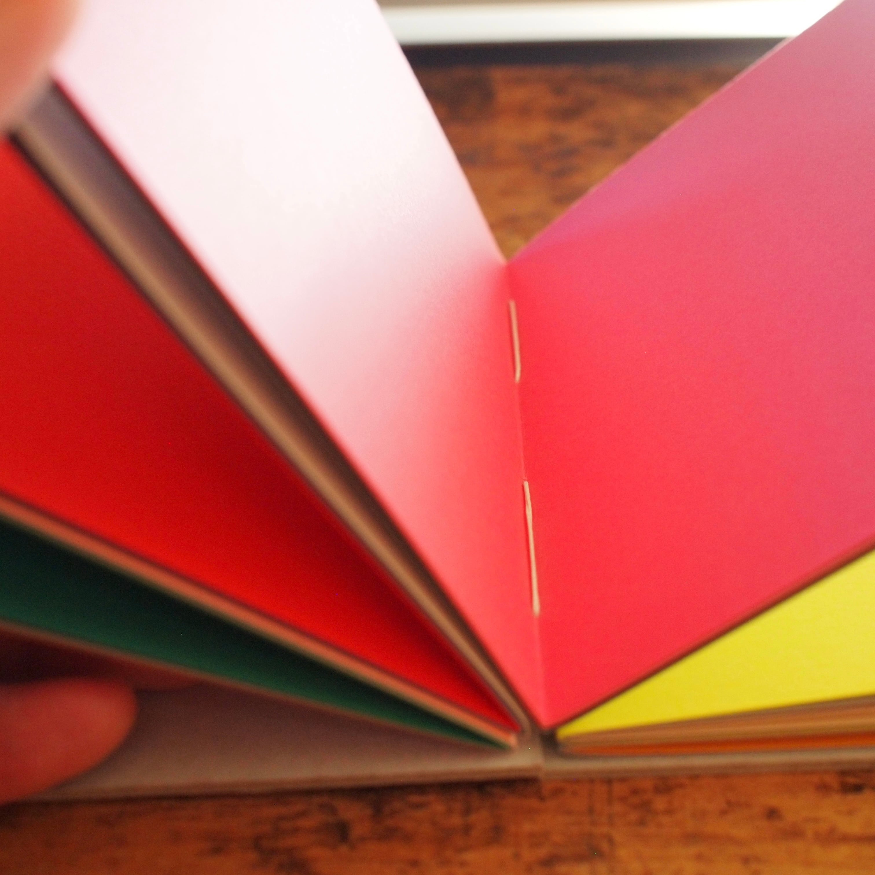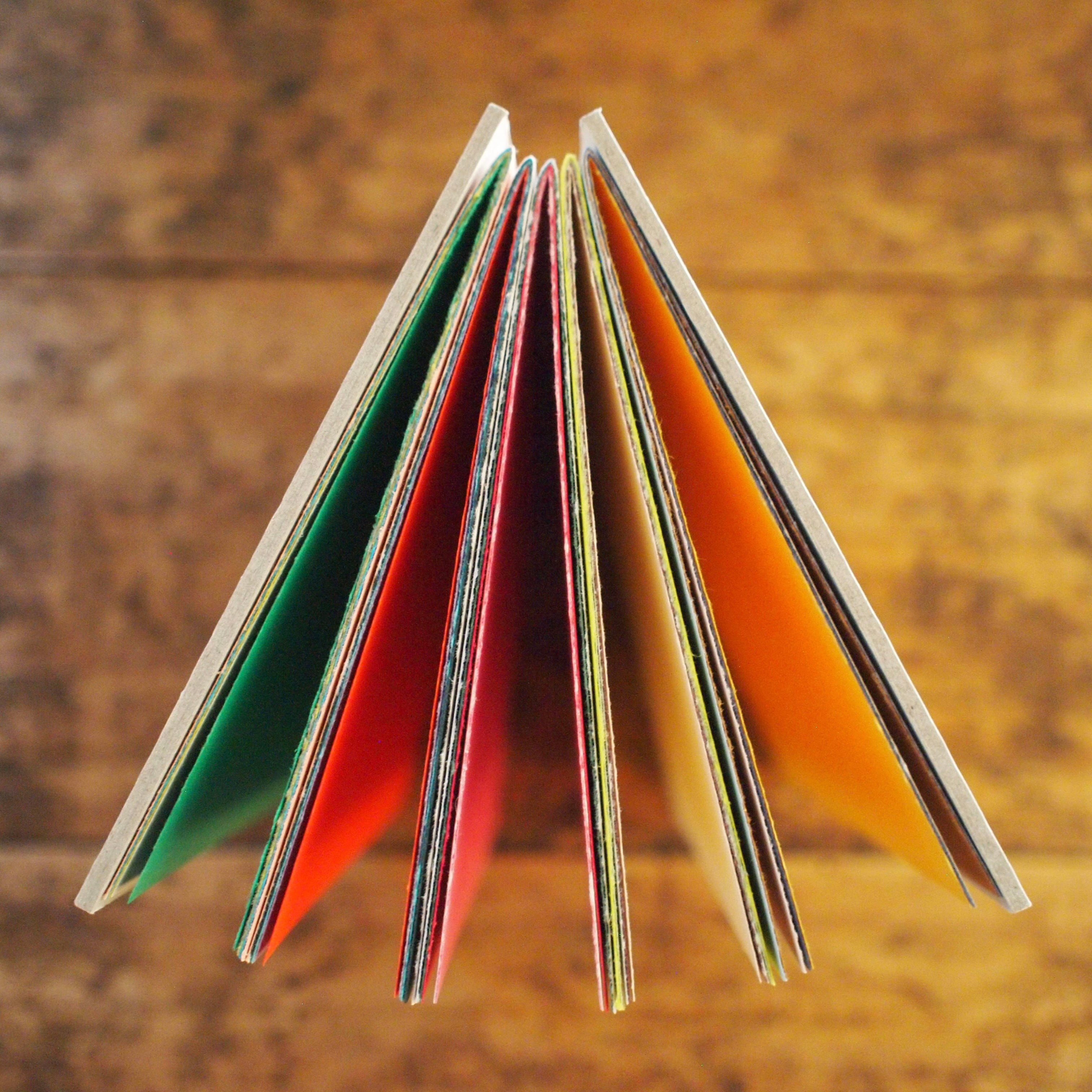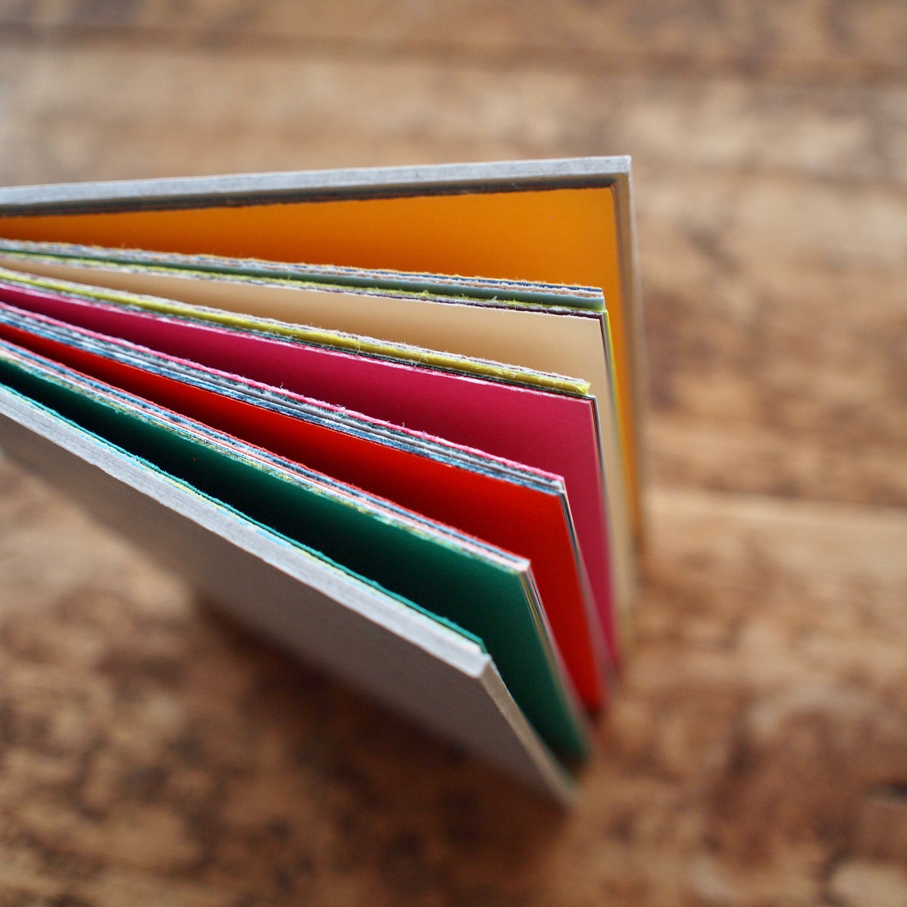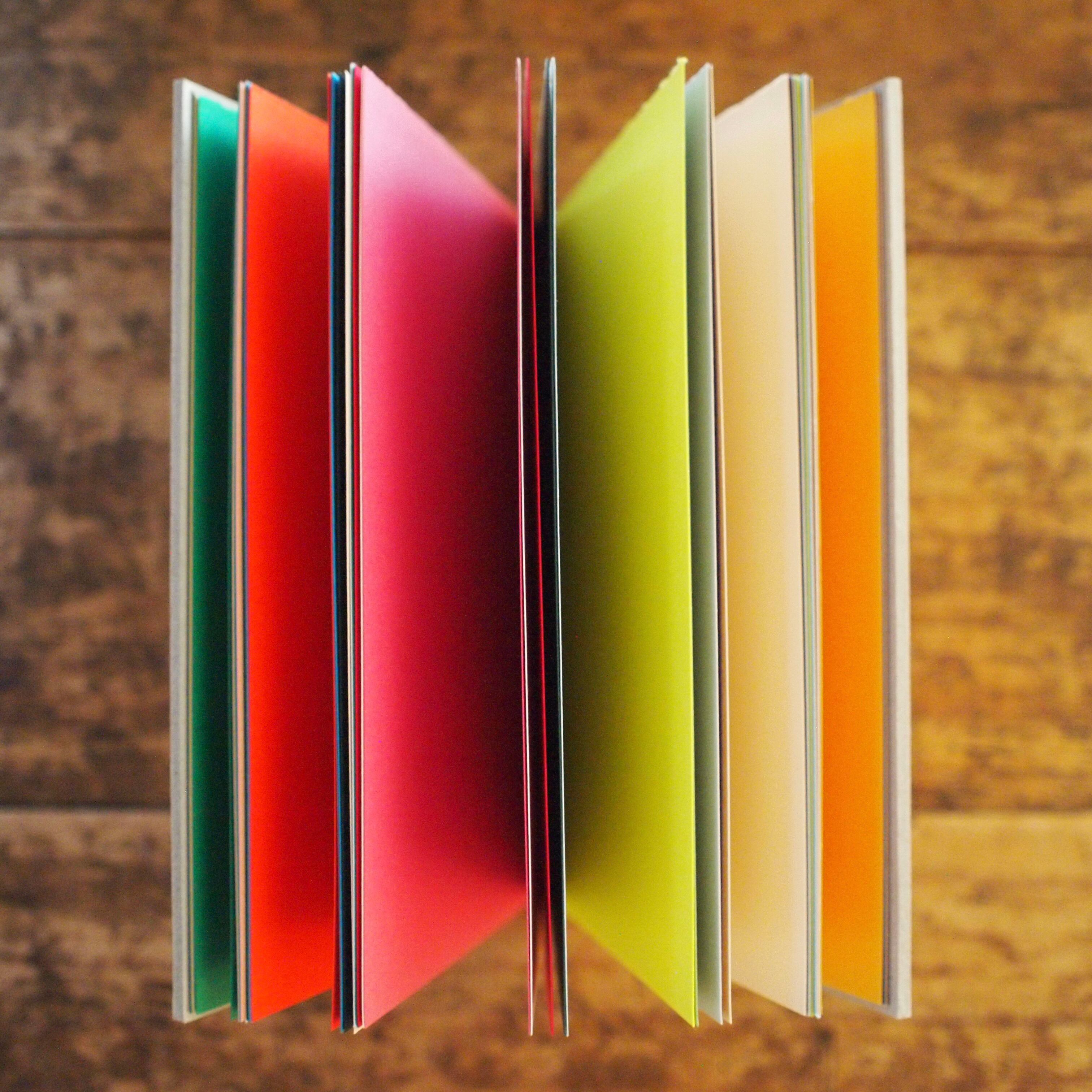 本文紙は50色のラシャ紙の中からランダムに色を選び、組み合わせました。