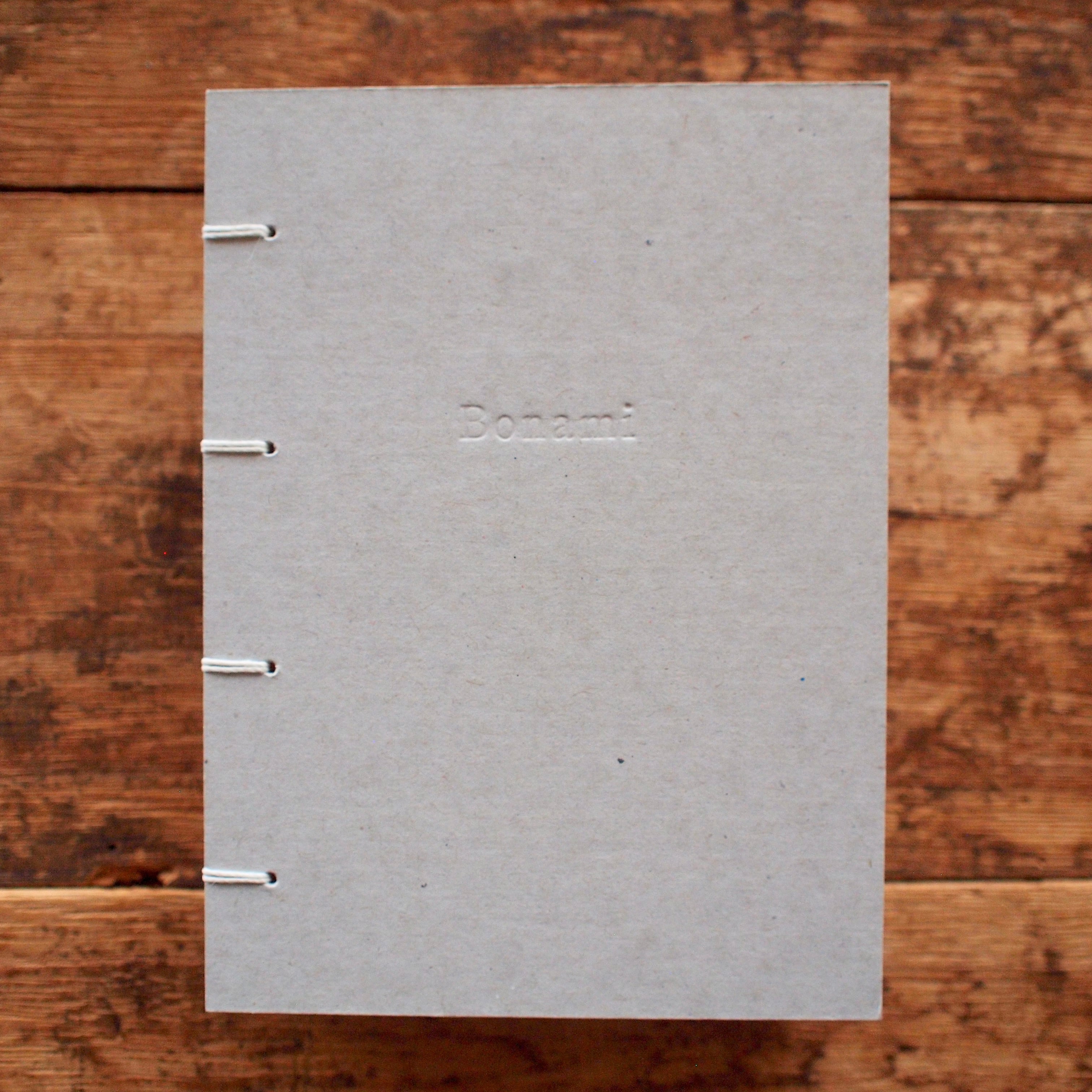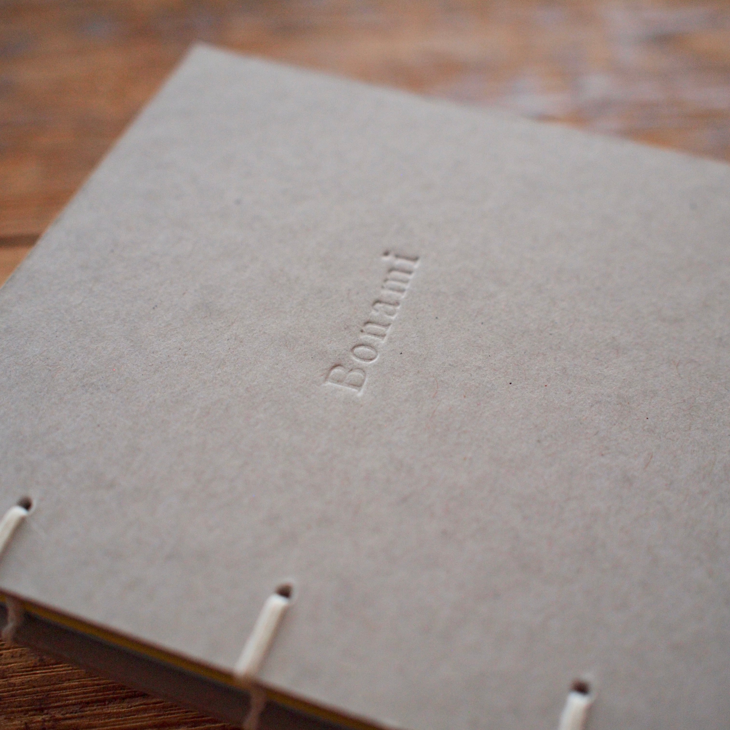 表紙には、手製本やカルトナージュで使われる芯材のボール紙を、あえてそのまま使用しています。