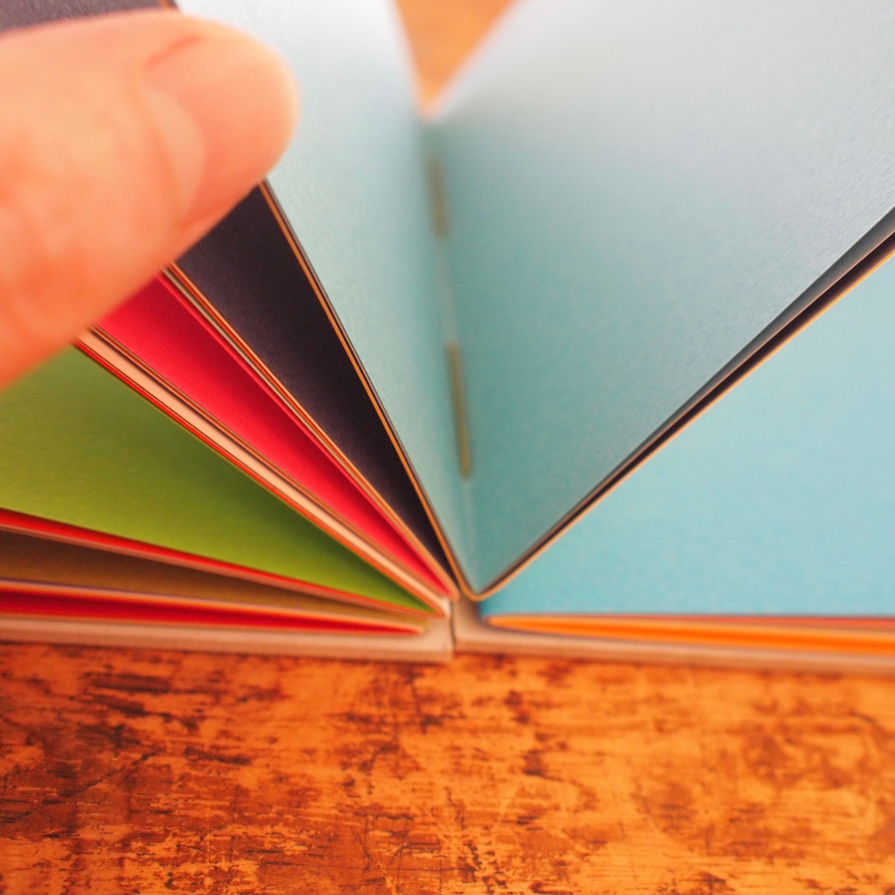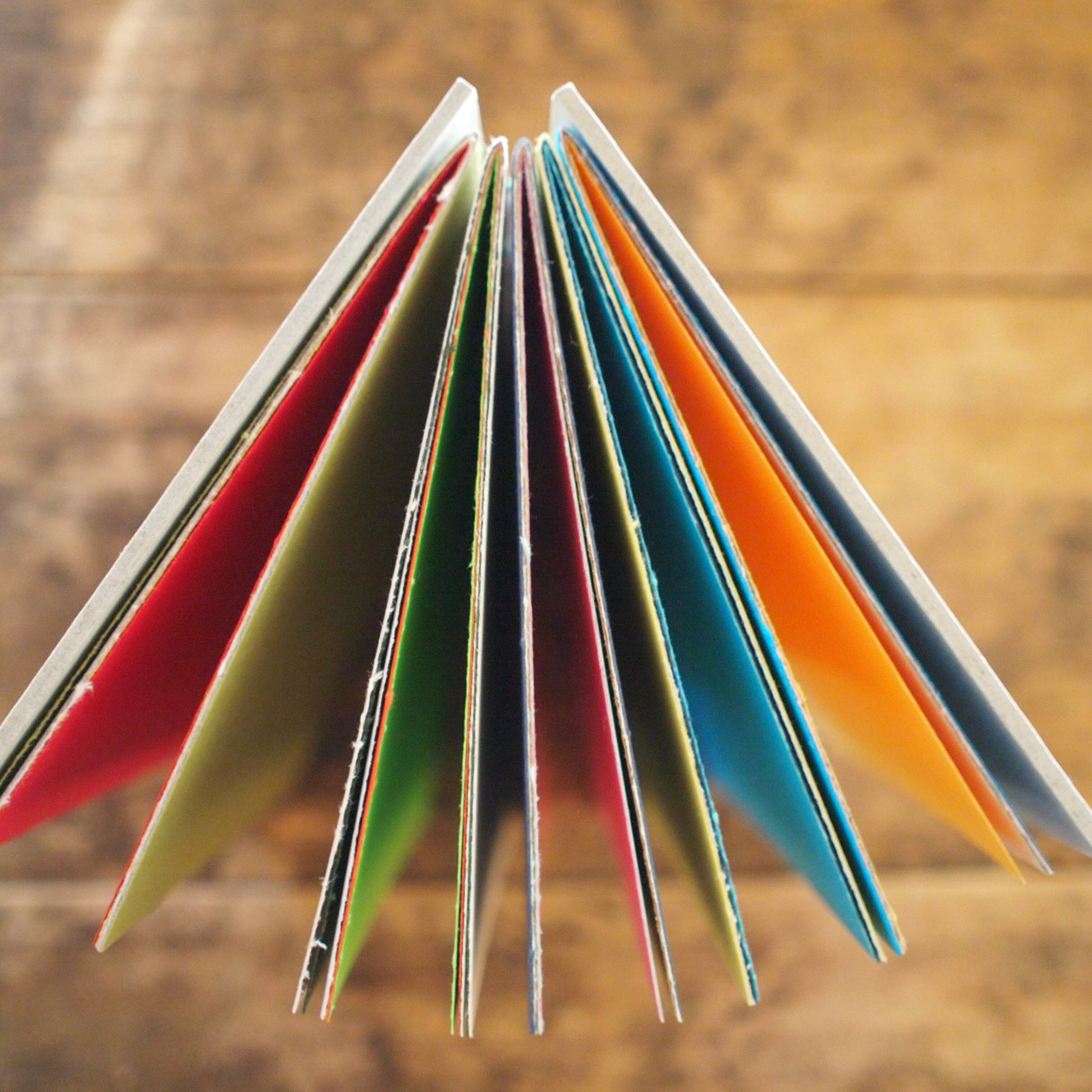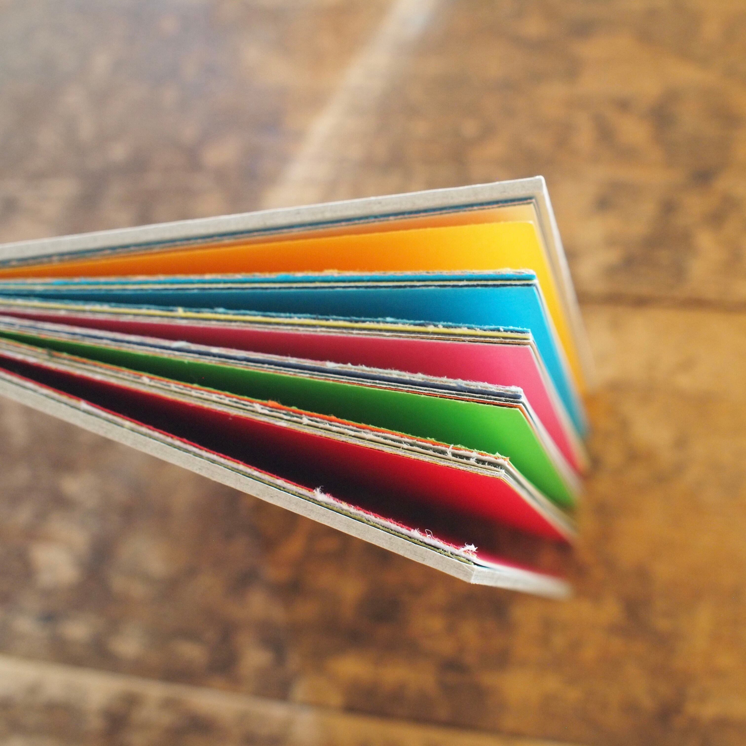 本文紙は50色のラシャ紙の中からランダムに色を選び、組み合わせました。