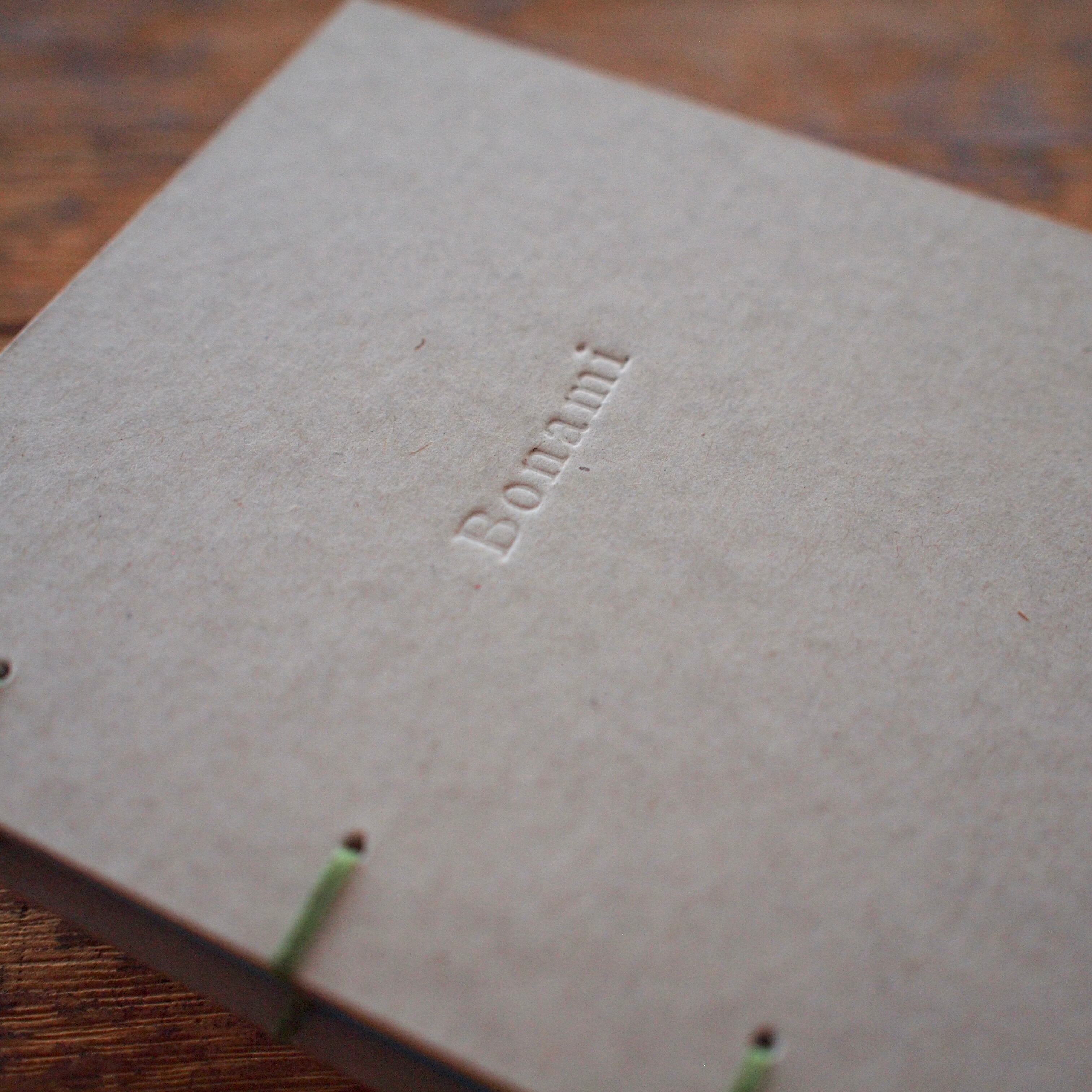 表紙には、手製本やカルトナージュで使われる芯材のボール紙を、あえてそのまま使用しています。