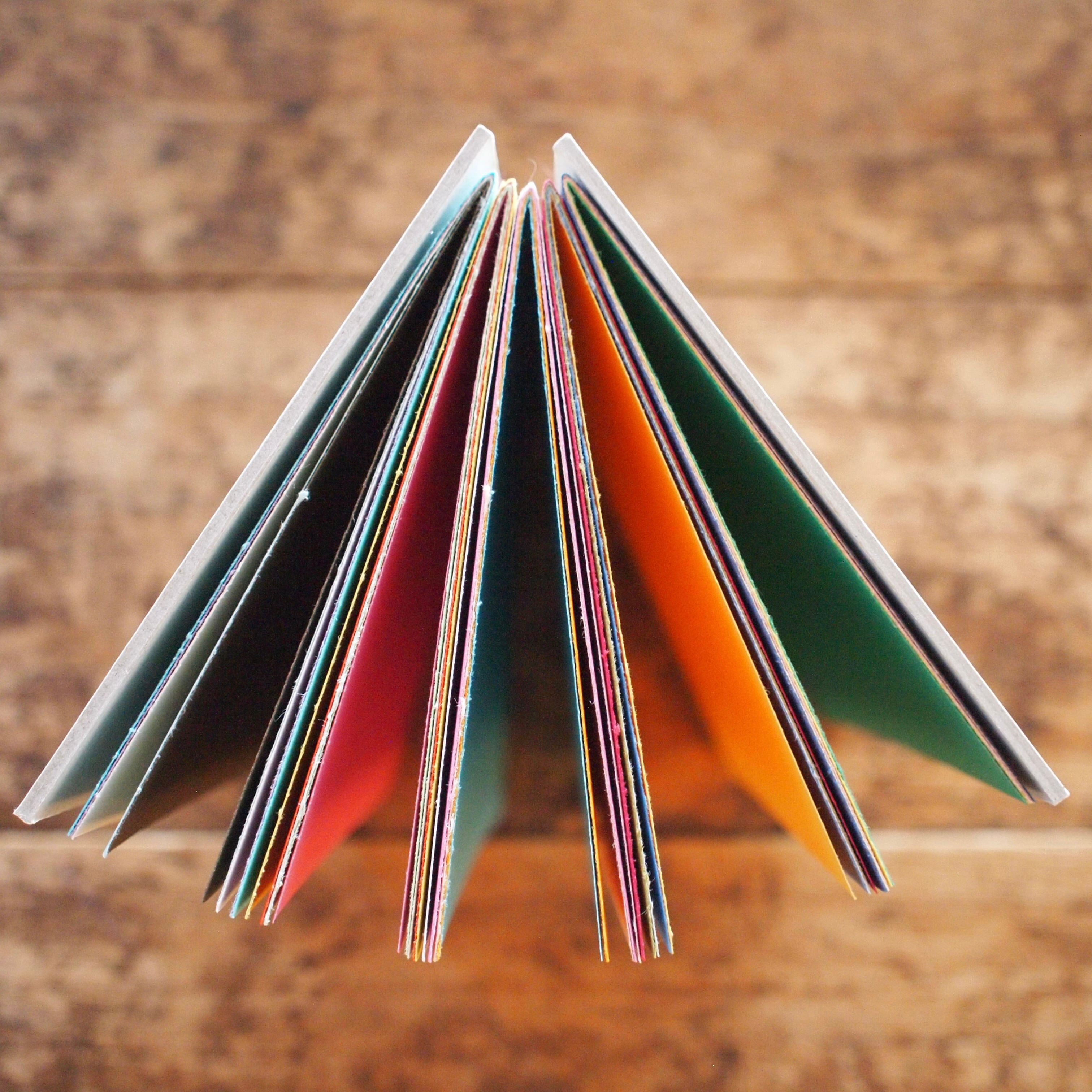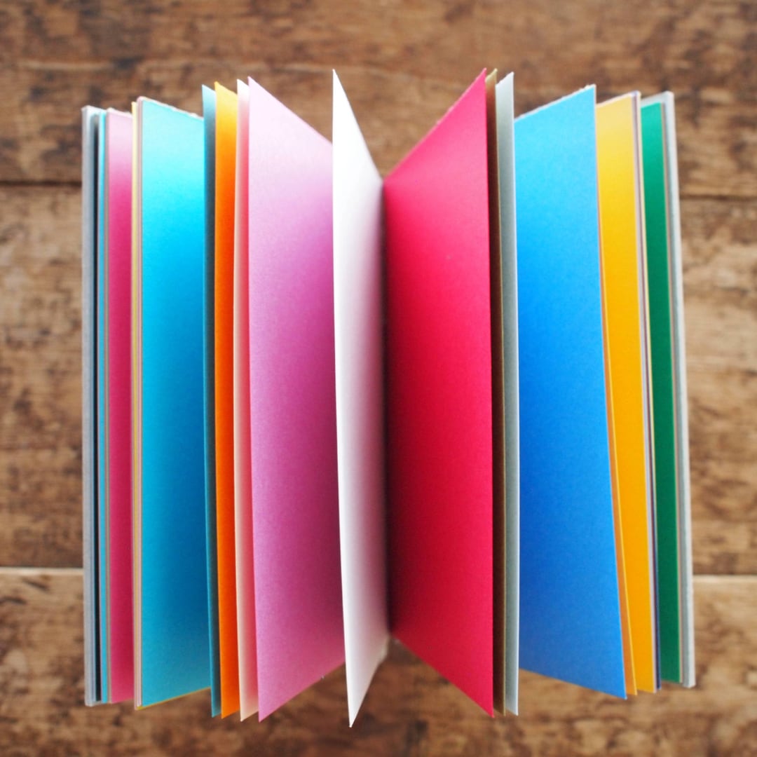 本文紙は50色のラシャ紙の中からランダムに色を選び、組み合わせました。