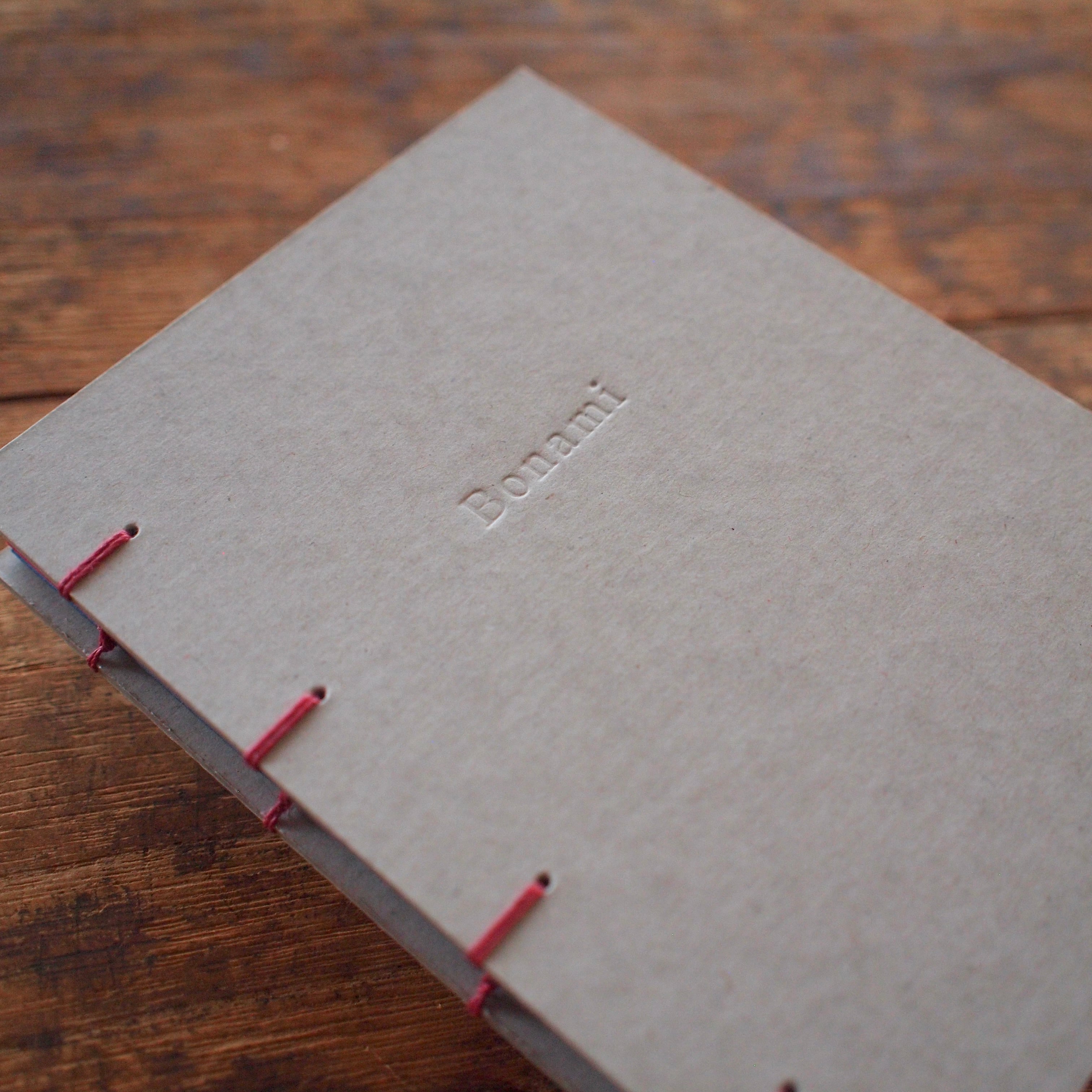 表紙には、手製本やカルトナージュで使われる芯材のボール紙を、あえてそのまま使用しています。