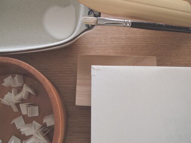 まずは本文の背になる側の上下の角に、補強のための角布(かどぎれ)を貼ります。